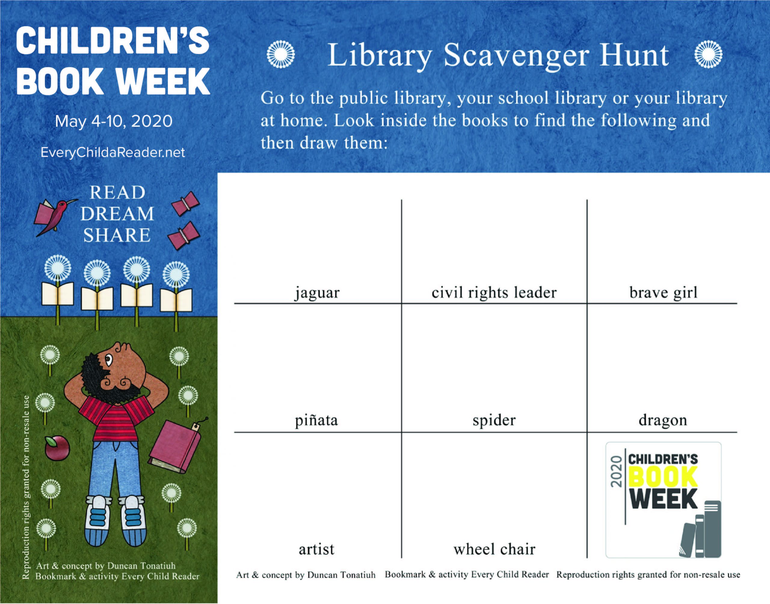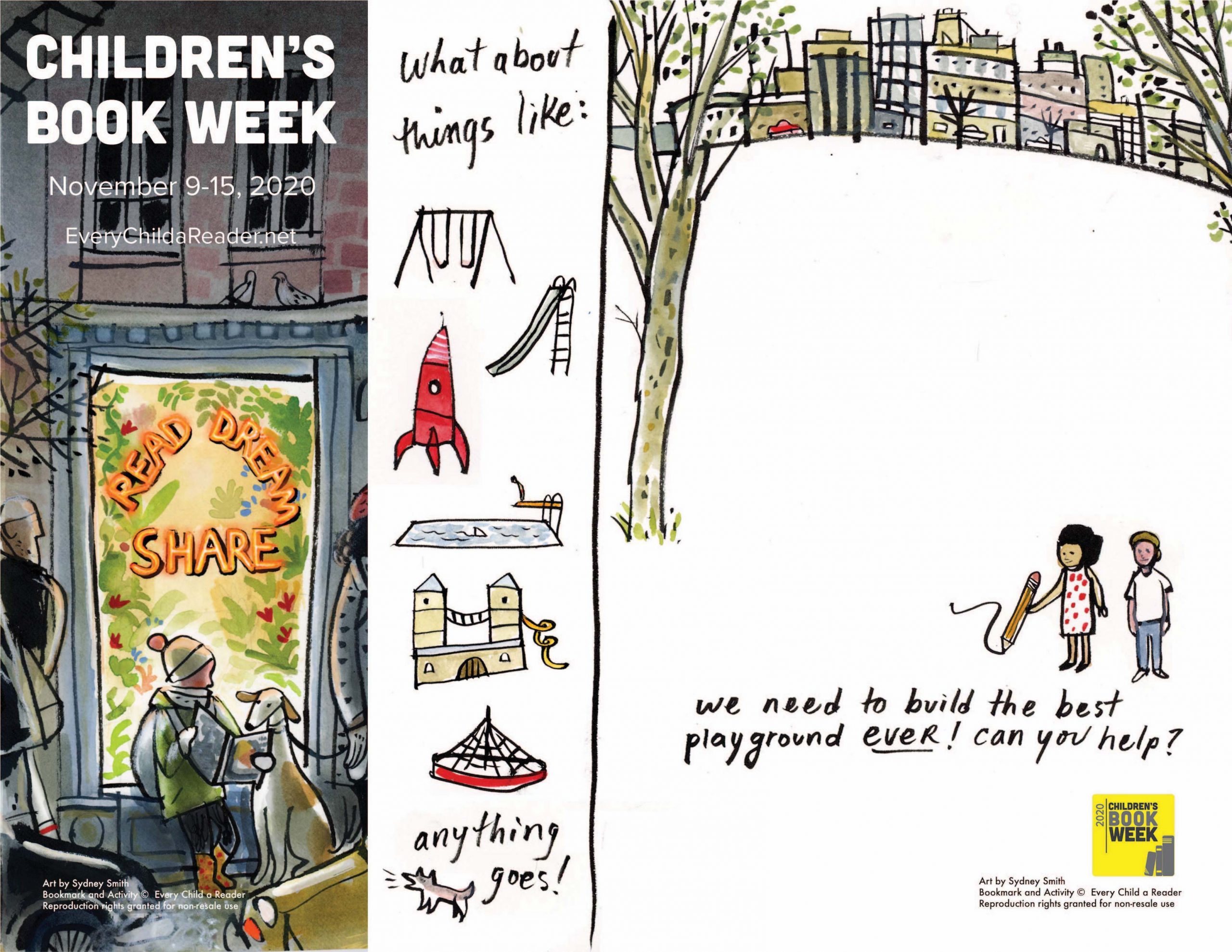In 2008 it became an annual tradition of Children’s Book Week to work with esteemed children’s book illustrators on special bookmarks for the celebration. Over the years, this resource has evolved to include multiple creators each year, some with activities included. You can see the year’s current creators here.