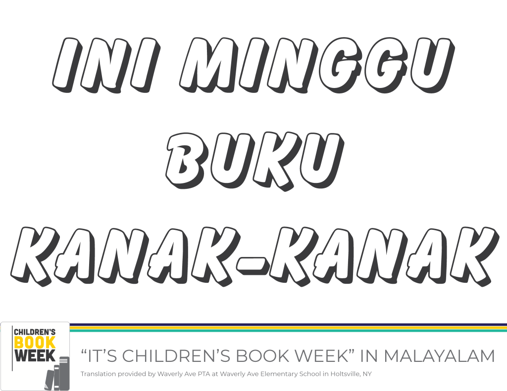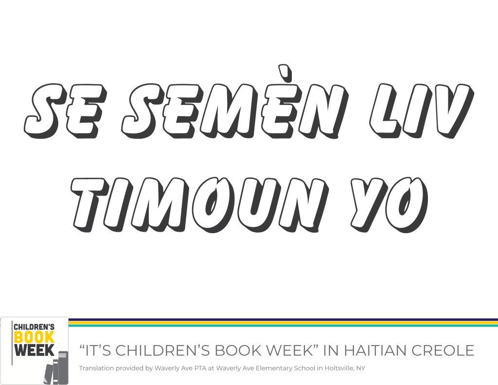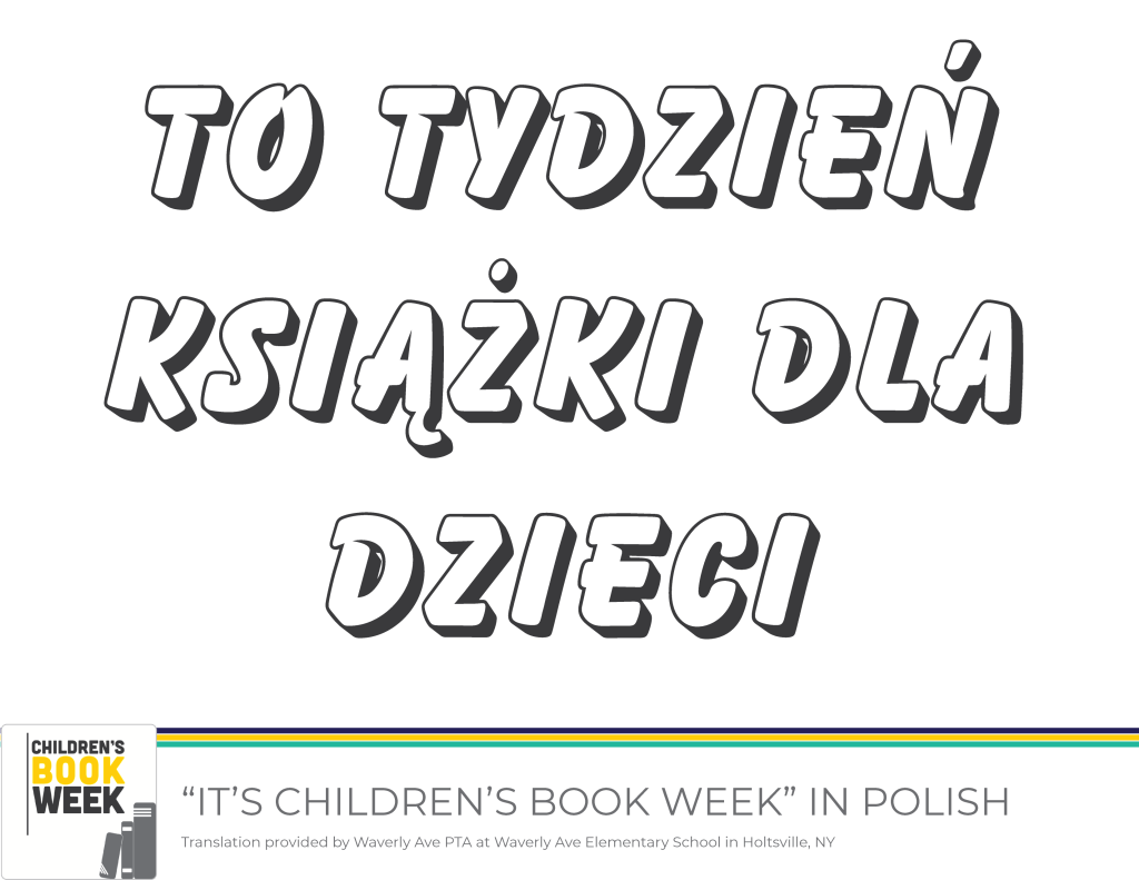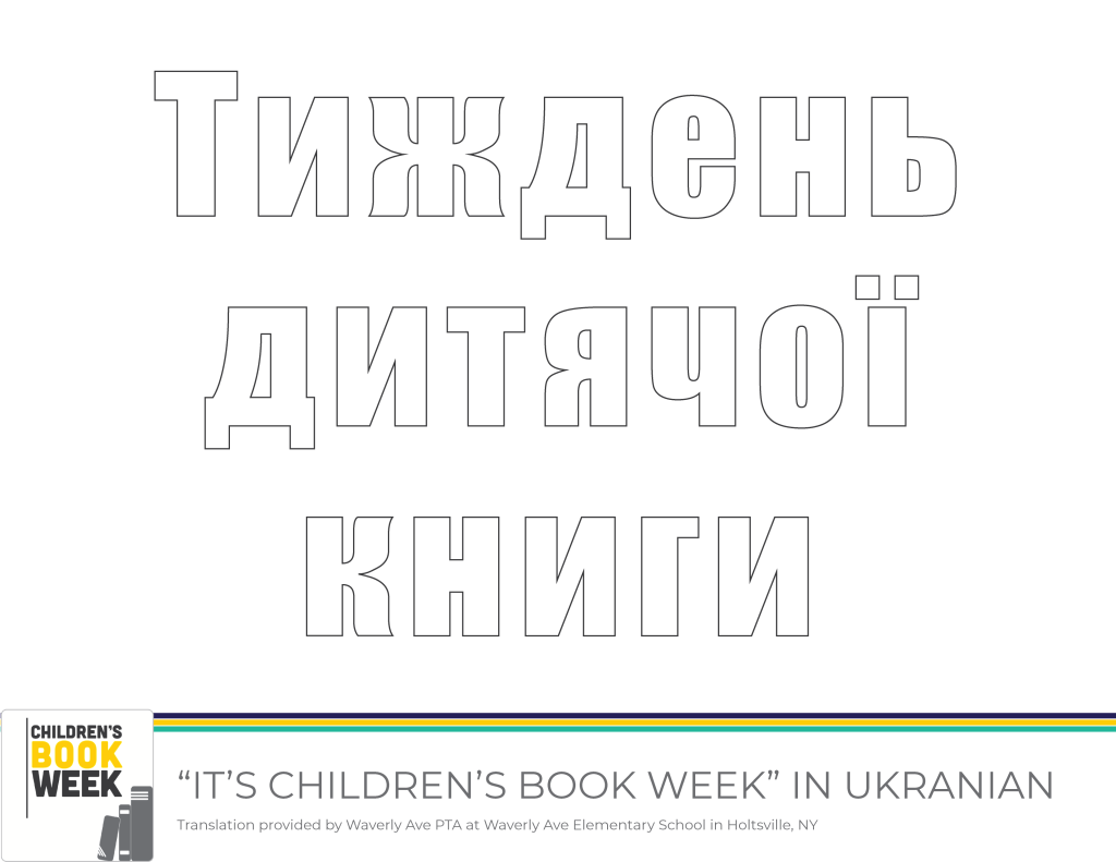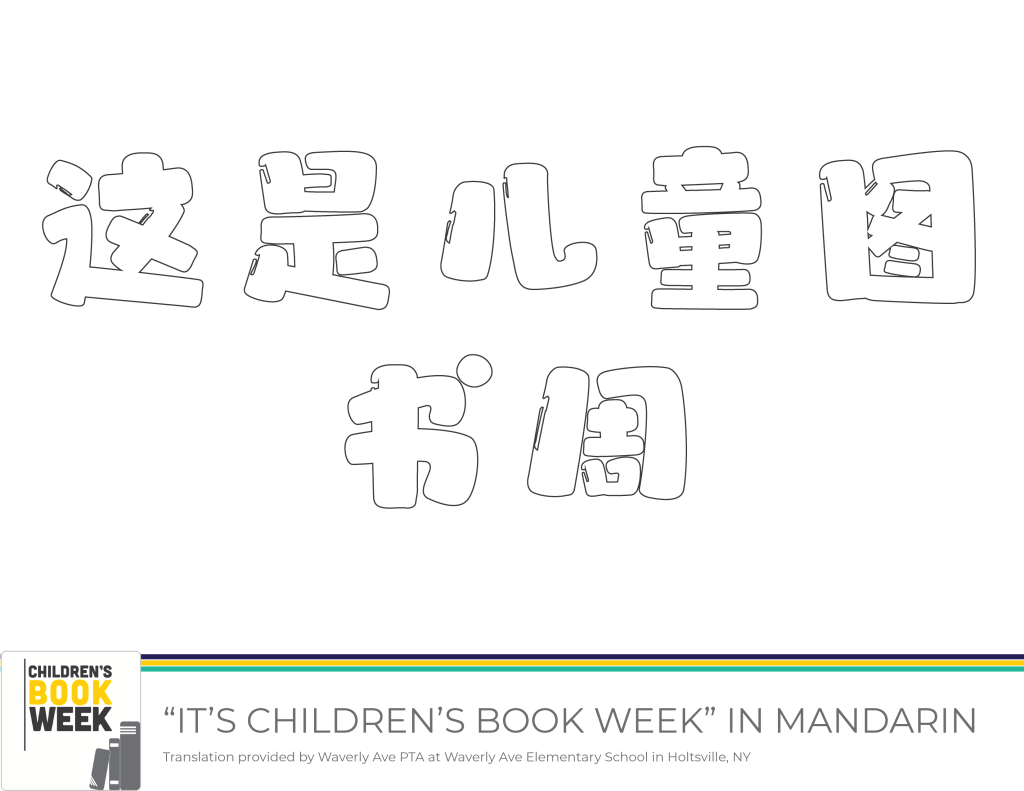 Waverly Ave PTA at Waverly Ave Elementary School in Holtsville, NY compiled the phrase “It’s Children’s Book Week” in several languages. Display traveling stamps or enjoy coloring bubble letters of the different languages or create your own in your own language!